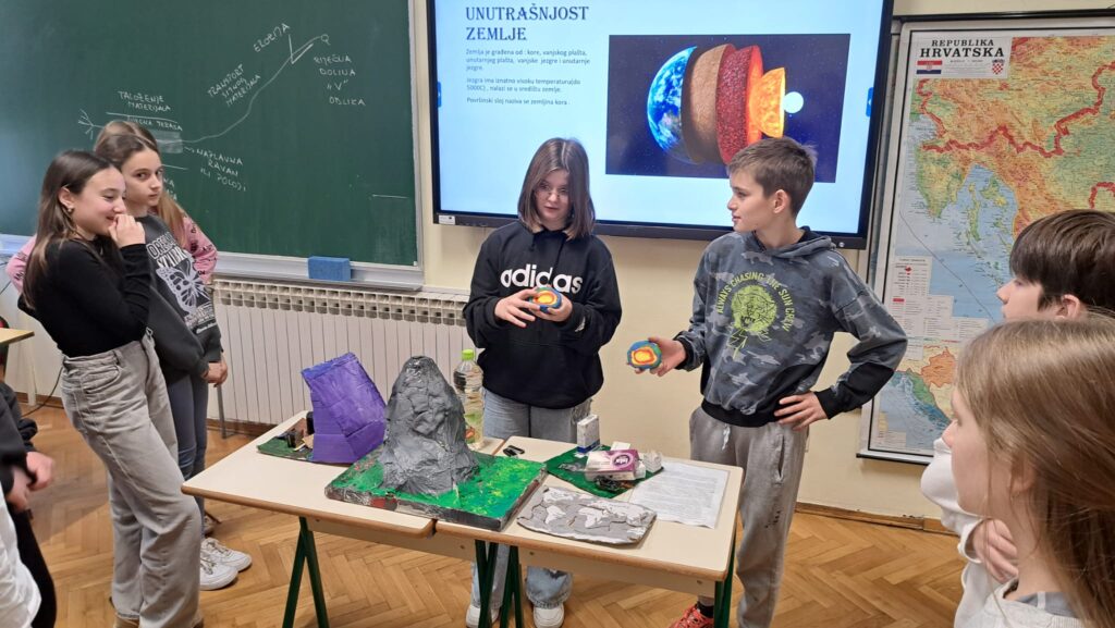 Nakon učenja o građi Zemlje i unutarnjim silama koje oblikuju reljef, učenici 5. razreda okušali su se u projektnom zadatku po vlastitom izboru. Istraživali su vulkane, potrese, tsunamije, pokrete litosfernih ploča i građu našeg planeta.