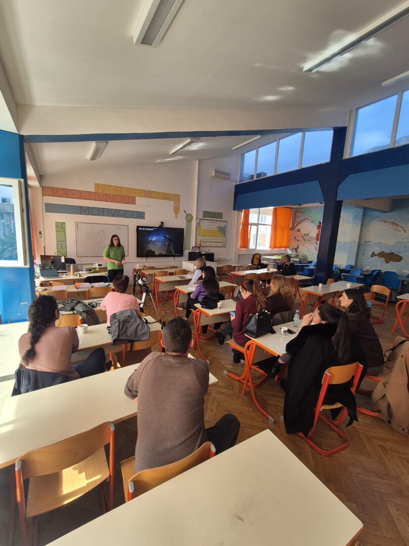 Istoga dana održano je i stručno usavršavanje za učitelje, nastavnike i stručne suradnike na temu Svjetlost i druga zračenja. Sudionici su produbljivali znanja o svjetlosti, optičkim pojavama i različitim vrstama zračenja, a radionica je bila posebno vrijedna zbog spoja teorijskog dijela i praktičnih zadataka. Kroz zajednički rad i razmjenu iskustava učitelji su dobili ideje kako ovakve sadržaje prenijeti učenicima na jednostavan, jasan i zanimljiv način.